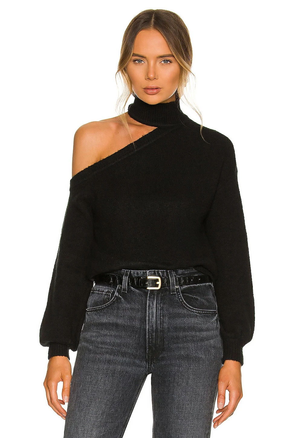 - Mockneck with shoulder cut-out